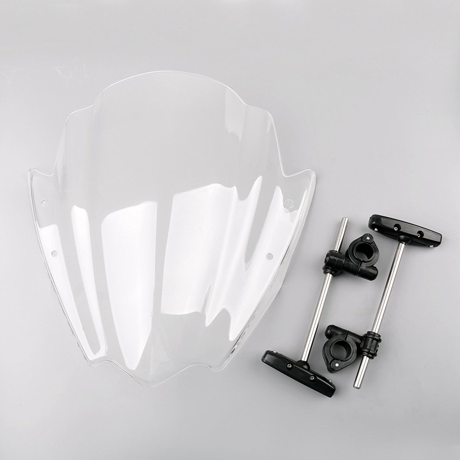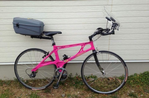 以前から呼吸も楽に、景色も楽しめるようなアップライトなDHポジションで平地を淡々と走るような自転車を作ってみたいと思っていたんですけど、amazonでバイク用のウィンドシールドが比較的安価に売られているのを発見し、遊んでみることにしました。